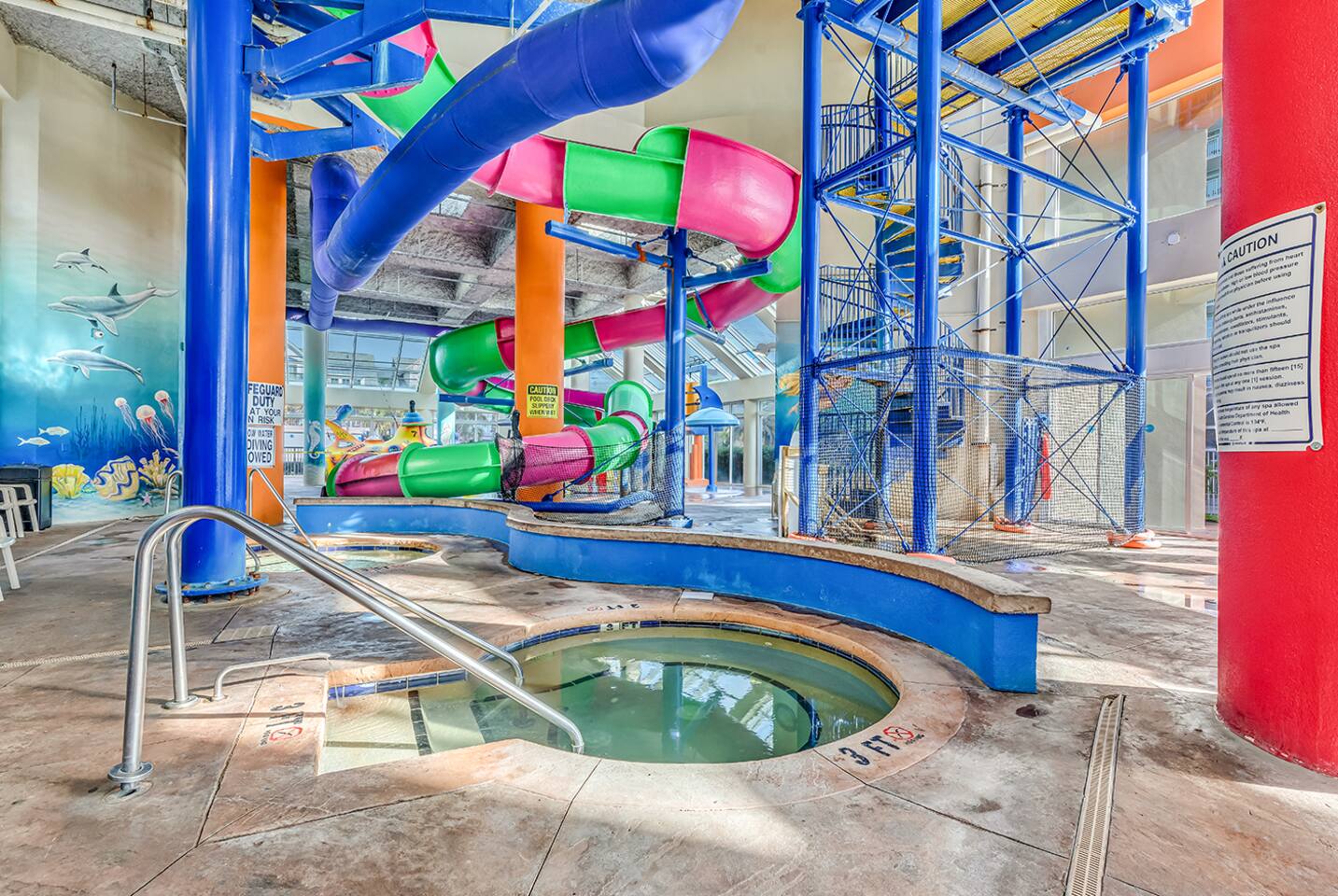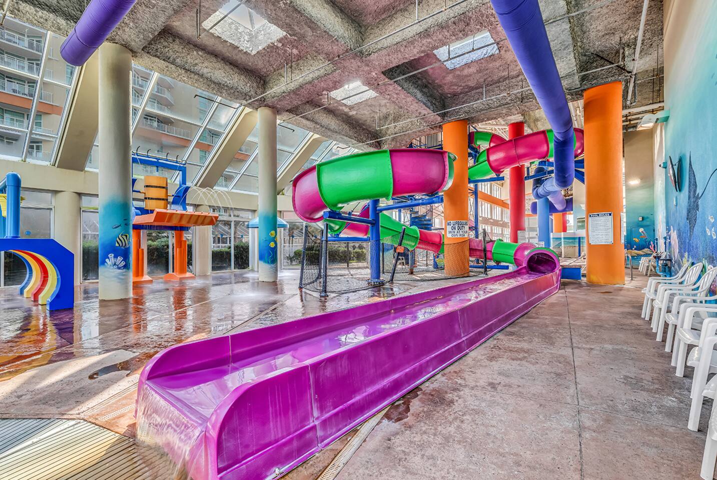 Dunes Village is not only the home of the area’s largest indoor water parks, it's also just steps from the amazing Atlantic ocean and beautiful beach! Additional amenities include tennis courts, basketball court, sand volleyball court, ping pong, shuffle board, outdoor pools/spas, and a children's play area. There are two onsite restaurants and Starbucks Coffee in the lobby. Dunes Village is located a short drive from downtown Myrtle Beach area, and so close to Broadway at the Beach, the Myrtle Beach Convention Center, the Myrtle Beach Boardwalk and The Sky Wheel.